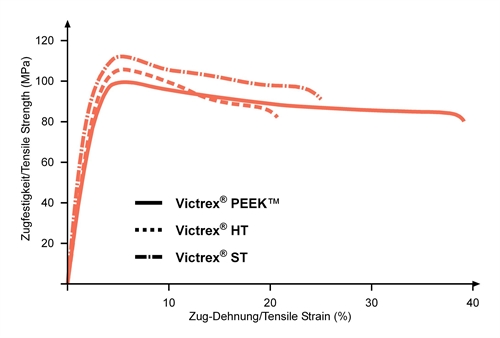 Neben der Basistype Victrex® PEEK™, die in verschiedenen Modifizierungen erhältlich ist, gibt eine Hochtemperaturtype Victrex® HT (PEK) sowie eine mechanisch besonders feste, nochmal temperaturbeständigere Sondertype Victrex® ST (PEKEKK).